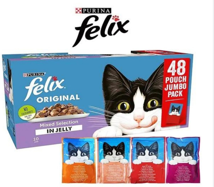 بافت و طعم جذاب — غذا به صورت «تکههای گوشت/ماهی در ژله» عرضه میشه، که برای گربهها (حتی گربههای بدغذا یا حساس به طعم) خوشاینده؛ این تنوع طعم ممکنه سبب بشه گربه بهتر غذا بخوره.